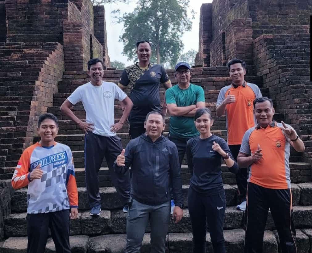 The Jamb Times, MUAROJAMBI |™Kapolres Muarojambi AKBP Yuyan Priatmaja SIK MH memimpin langsung kegiatan olah raga jogging pagi di komplek percandian Muarojambi di Candi Muarojambi, Sabtu (22/05/2022).pada pukul 6.00 Wib pagi sampai selesai.